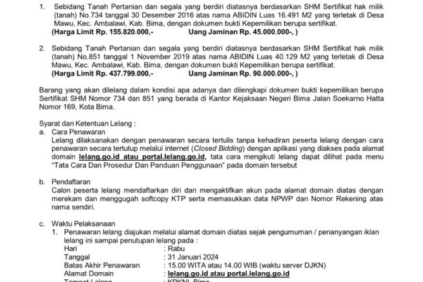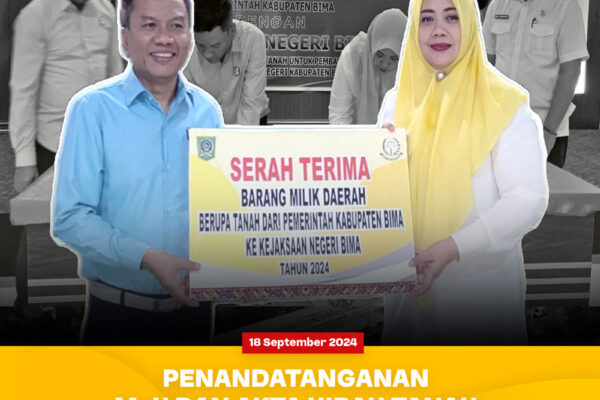 Pada hari Rabu, 25 Februari 2026, bertempat di Aula Baharuddin Lopa Kejaksaan Negeri Bima Kepala Kejaksaan Negeri Bima, Heru Kamarullah, S.H., M.H., bersama Kepala Kantor Pertanahan Kota Bima, Hodidjah, S.H., S.Sos., M.M., QRMO, dan Kepala Kantor Pertanahan Kabupaten Bima, Lalu Makhyaril Huda, S.ST., M.H., beserta jajaran melaksanakan penandatanganan Nota Kesepahaman (Memorandum of Understanding/MoU) tentang Kerja…