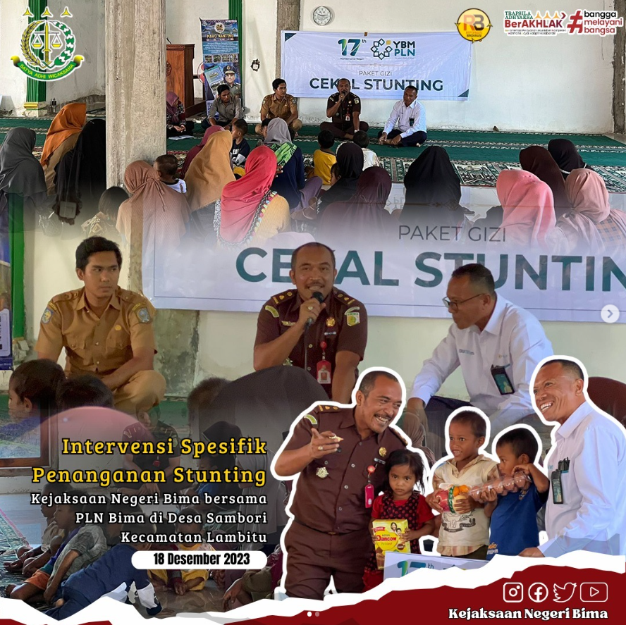 Senin, 18 Desember 2023 telah dilaksanakan Intervensi Spesifik Penanganan Stunting Kejaksaan Negeri Bima bersama PLN Cabang Bima di Desa Sambori Kecamatan Lambitu.