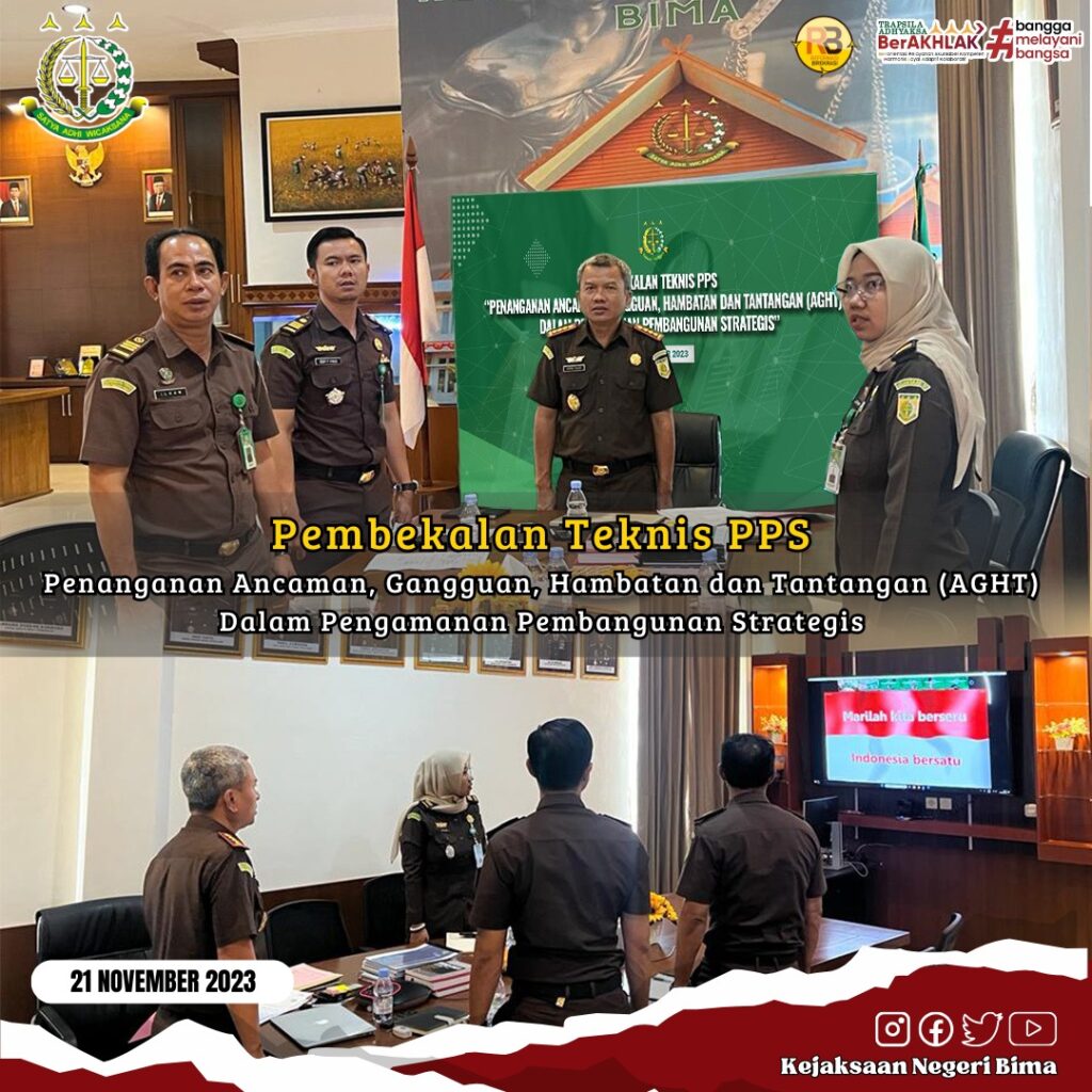 Pada hari Selasa tanggal 21 November 2023 bertempat di Ruang Vcon Kejaksaan Negeri Bima, telah dilaksanakan Kegiatan Pembekalan Teknis PPS Penanganan Ancaman, Gangguan, Hambatan dan Tantangan (AGHT) dalam Pengamanan Pembangunan Strategis.