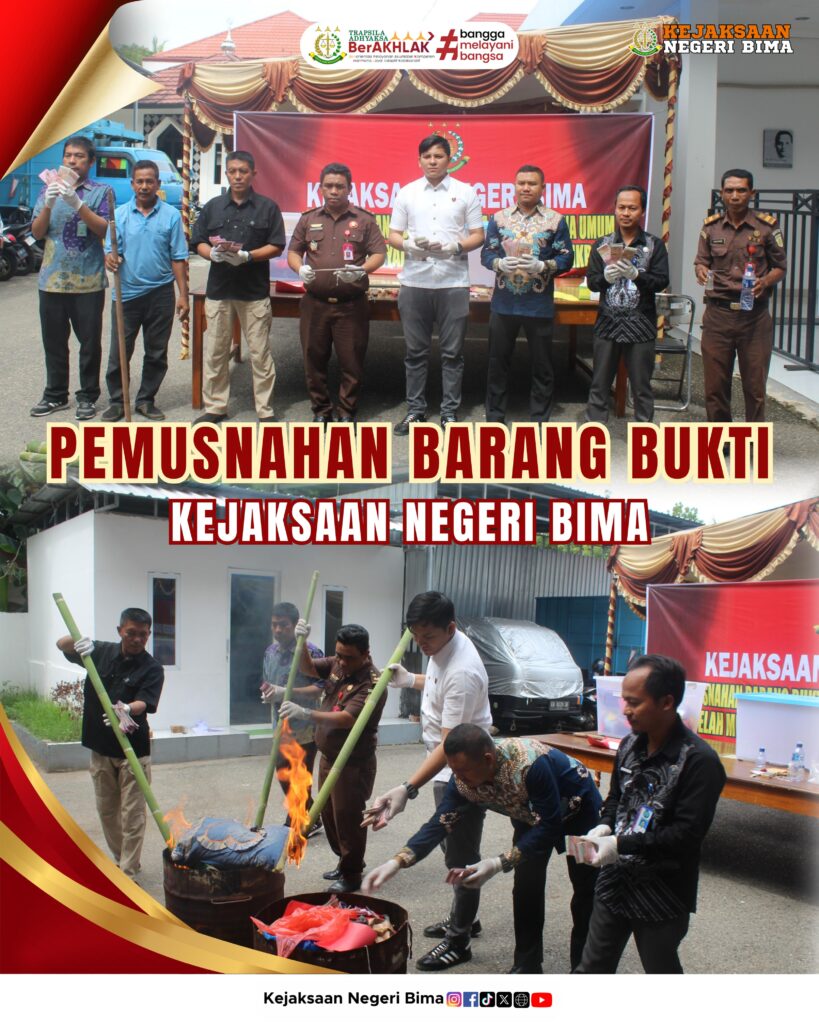 Kamis, 5 Desember 2024, Kejaksaan Negeri Bima melaksanakan kegiatan pemusnahan barang bukti perkara tindak pidana umum yang telah mempunyai kekuatan hukum tetap (inkracht).