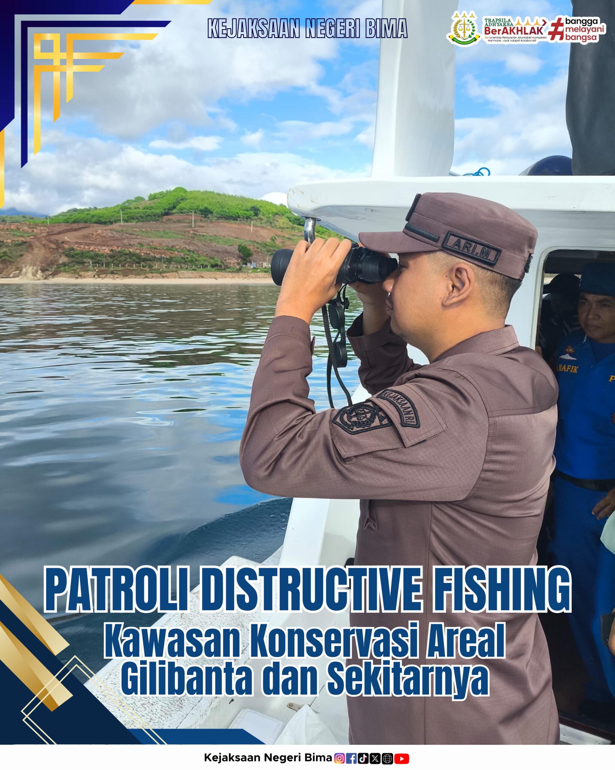 Kejaksaan Negeri Bima melaksanakan Patroli Distructive Fishing Bersama di kawasan konservasi areal gilibanta dan sekitarnya. Patroli dilaksanakan bersama TNI AL, Polairud Bima Kota, Polsus PW3K, BLUD UPTD BPSDKP Wilayah Bima Dompu, dan Pokmaswas.